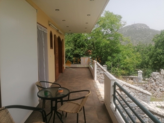 Αρκαδία, Λεβίδι, Βλαχέρνα, πωλείται επιπλωμένη διώροφη μονοκατοικία 126τμ., σε διαμπερές οικόπεδο 1700τμ. . Άδεια οικοδομής το 1993, ολοκλήρωση το 2003. Σαλόνι, κουζίνα, 3υ.δ., 2 μπάνια, εσωτερική σκάλα, δάπεδο πλακάκι και ξύλο, κουφώματα ξύλινα, μονά τζάμια, τζάκι, αυτόνομη θέρμανση, κλιματιστικό, boiler, θερμοσίφωνα, αποθήκη, parking. Περιμετρικά βεράντες. Διαμορφωμένος κήπος με δέντρα, θέα απεριόριστη, βουνό. 32χλμ από Τρίπολη.